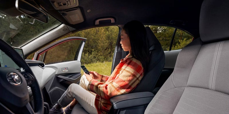 The available Smart Key System streamlines your routine, enabling keyless access and push-button start for added ease and efficiency. Now, the Corolla Hybrid lets you effortlessly unlock the doors, trunk, and start the engine.