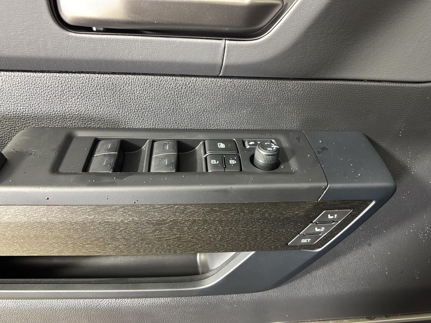 - Dark-gray American walnut wood-grain interior trim with backlit "CAPSTONE" on passenger dashboard and metal speaker grilles